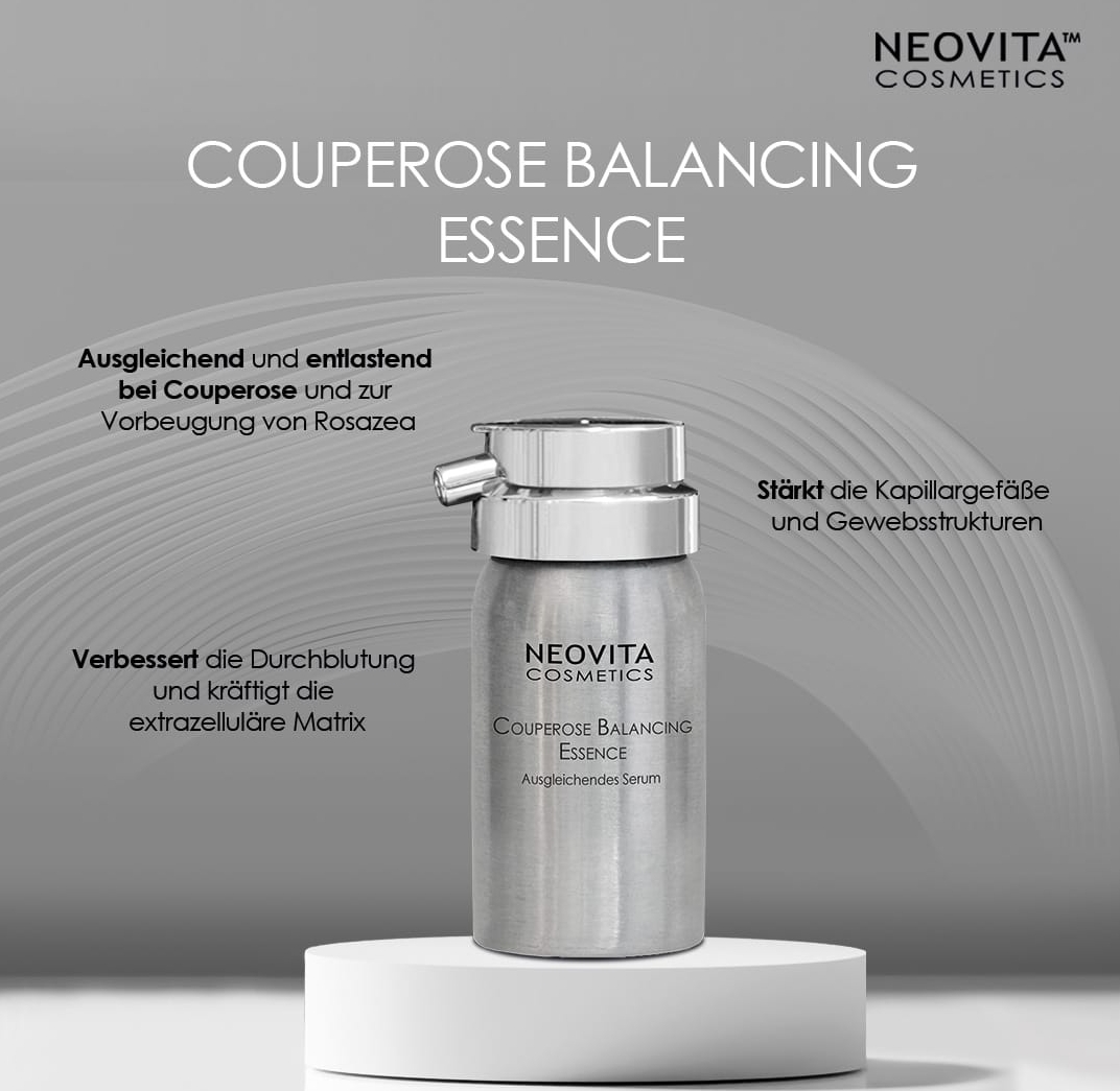 Couperose, Rötungen oder irritierte Haut? Couperose Balancing Essence wirkt ausgleichend bei Couperose und kann Rosazea vorbeugen. Stärkt die Kapillargefäße, kräftig die Gewebestruktur und fördert die Durchblutung für ein gleichmäßigeres gestärktes Hautbild ! Regelmäßige Anwendung kann den Hautzustand sichtbar verbessern. Couperose Balancing Essence: 64,00€